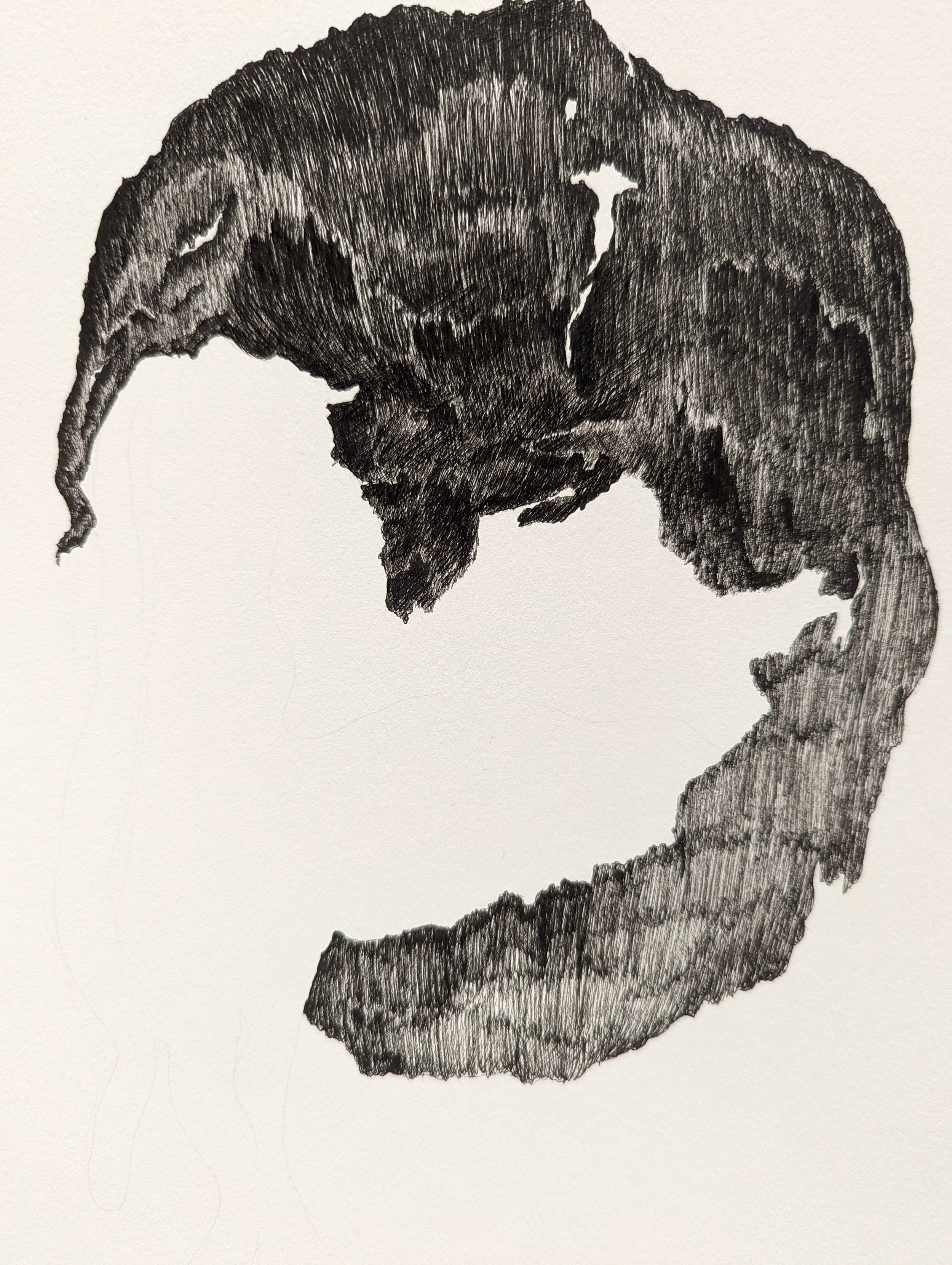 I took the general outline of a bird’s body and filled it in as I pleased. Ignoring anatomy and accuracy, removing the animal’s identity as a commentary on our apathy to the death of the creatures that exist within this environment with us.