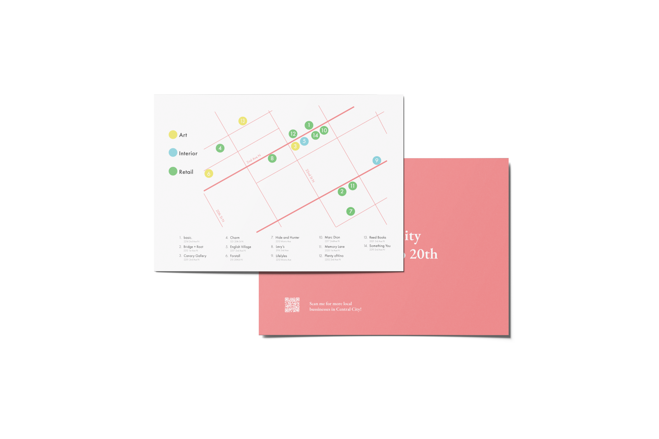 Shop Small Bham is a guide for all the small businesses of Birmingham. I was hired to design a map of some of the local shops downtown. They requested the maps be aesthetically pleasing, simply designed and easy to carry.